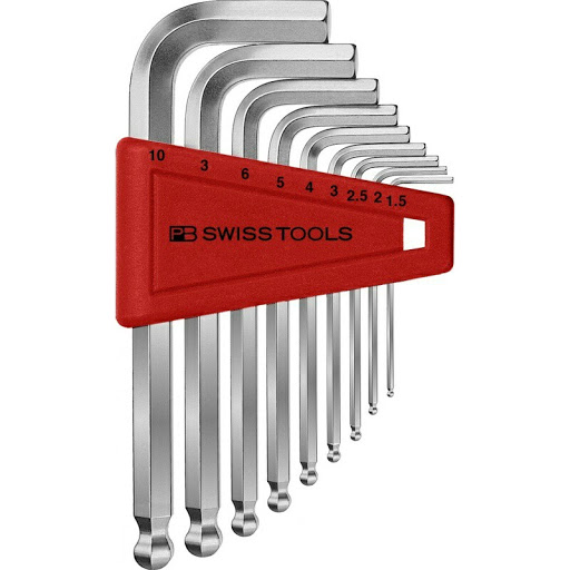 L-key set in holder, hexagon with ball end, PB 212.H-5, Contains the following six sizes: • 1.5 mm • 2 mm • 2.5 mm • 3 mm • 4 mm • 5 mm PB 212.H-6, Contains the following seven sizes: • 1.5 mm • 2 mm • 2.5 mm • 3 mm • 4 mm • 5 mm • 6 mm PB 212.H-8, Contains the following eight sizes: • 1.5 mm • 2 mm • 2.5 mm • 3 mm • 4 mm • 5 mm • 6 mm • 8 mm PB 212.H-10, Contains the following eight sizes: • 1.5 mm • 2 mm • 2.5 mm • 3 mm • 4 mm • 5 mm • 6 mm • 8 mm